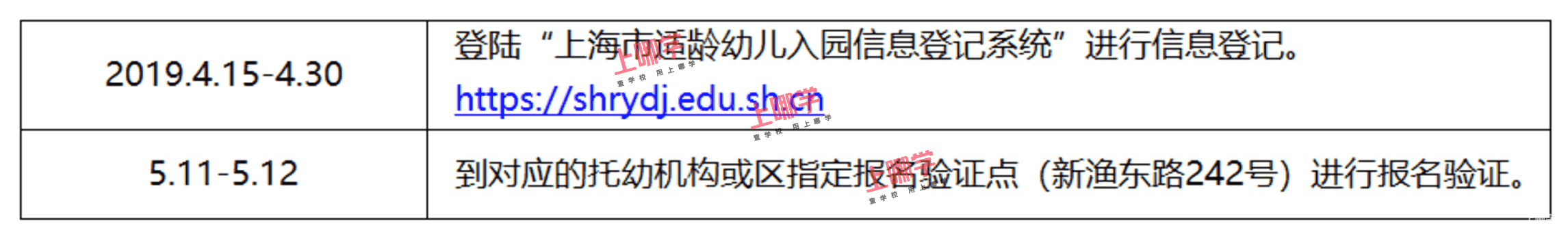 上海市集体户籍适龄幼儿 至新渔东路242号报名验证