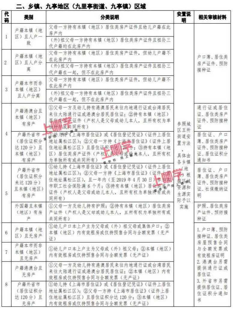 父母一方持有效期内《上海市居住证》,且一年内参加本市职工社会保险满6个月(2018年7月1日至2019年6月30日,不含补缴),或连续3年(从首次登记日起至2019年6月30日)在街镇社区事务受理服务中心办妥灵活就业登记,并持有招生区域内房产或具合法租住证明,幼儿持有效期内《上海市居住证》或《居住登记凭证》