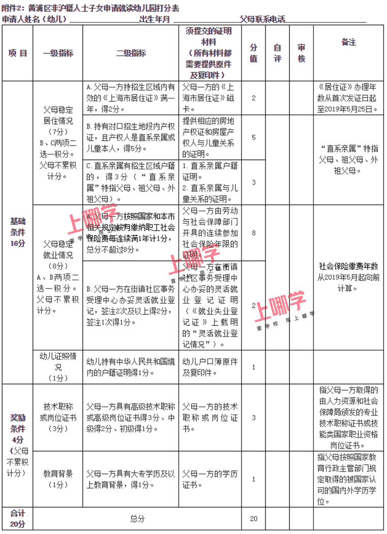 1、作为打分依据的父母一方居住证磁卡、上海市居住登记凭证、境外人员临时住宿登记单等