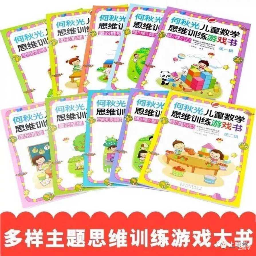 除了上面说的,何秋光还有两套书籍。第一套是按年龄来划分(图左)刷起来比较轻松,第二套按知识点类型区分(图右),部分题目有难度,不适合早刷。入建议先做第一套再做第二套。