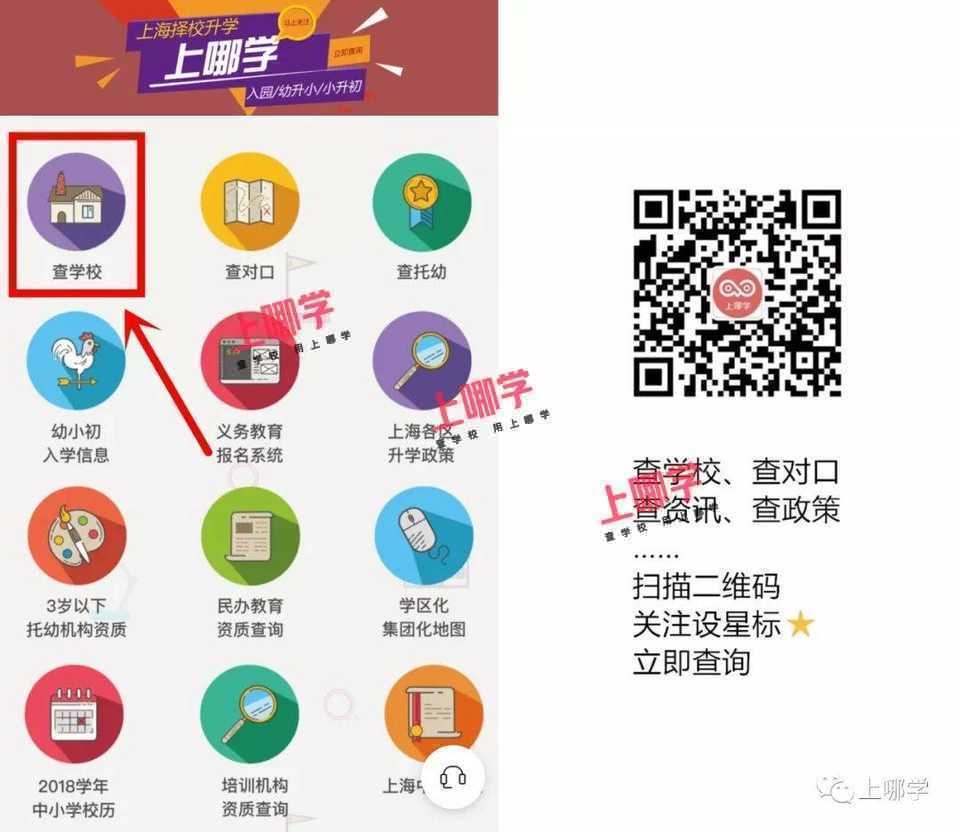 ▲扫描二维码,关注【上哪学】菜单栏—升学工具—查学校,立即查询2019年上海中小学基本信息、招生简章!