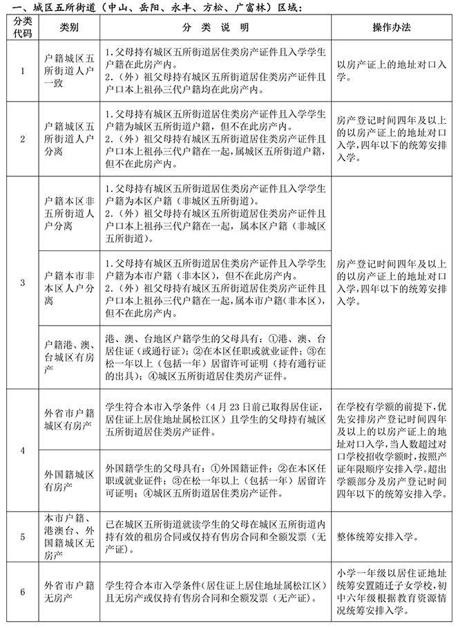 以上6类情况中的每一类都要根据户籍或实际居住的年限长短等实际情况按顺序予以统筹安排。具体可查阅学校发布的招生公告。