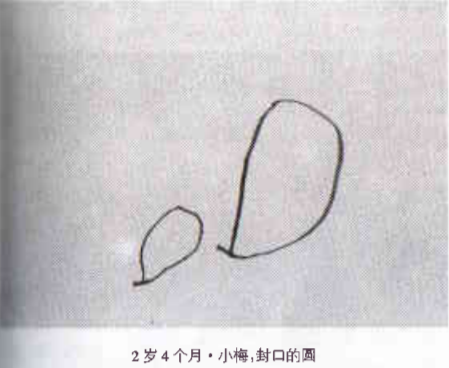 • 2 岁左右:会发现握笔敲打动作和线条之间是有关联的,开始有意识地控制动作,会画封闭的圆圈,甚至能用画出的形状表达熟悉的事物。