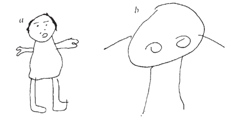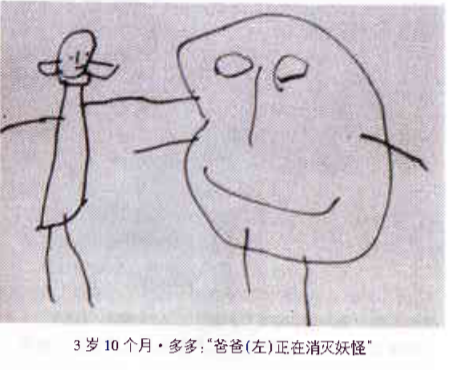 实验发现,平均年龄为 4 岁的孩子能够很好地画出有头、躯干和四肢的标准小人;岁数小一点、平均年龄为 3.7 岁的孩子却画出了没有躯干、四肢连着头的「蝌蚪人」。