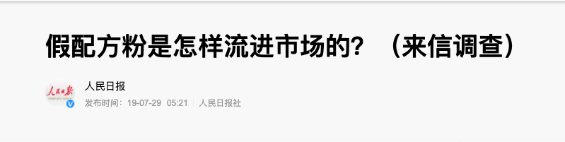 2019 年 7 月,《人民日报》就曾跟进调查、曝光,并发文呼吁,要加强特医奶粉的市场监管,确保婴幼儿食品安全。