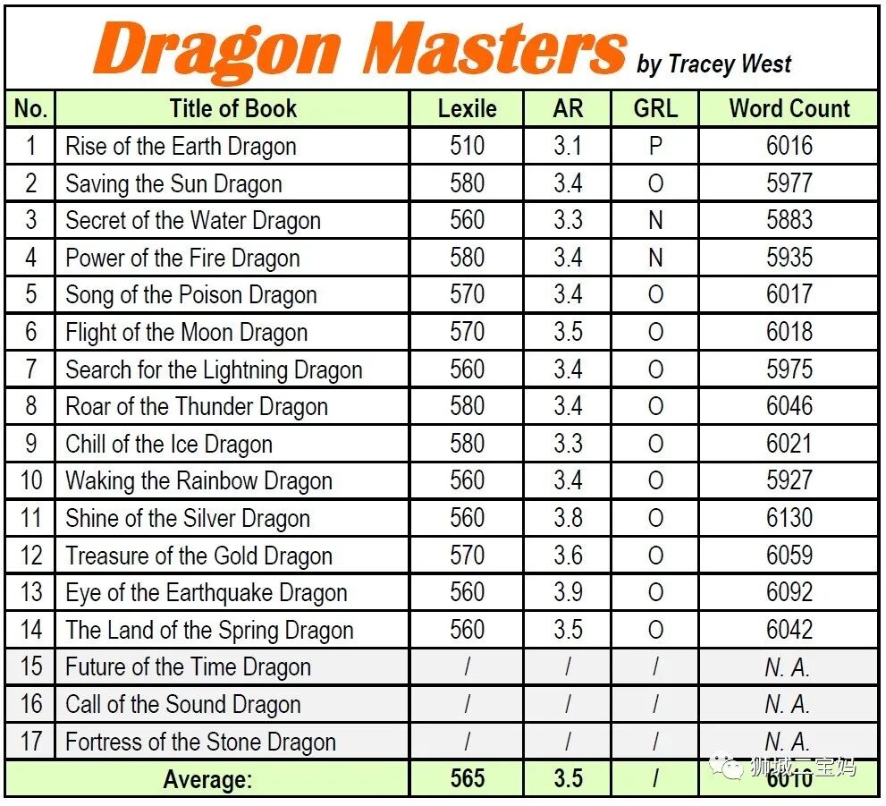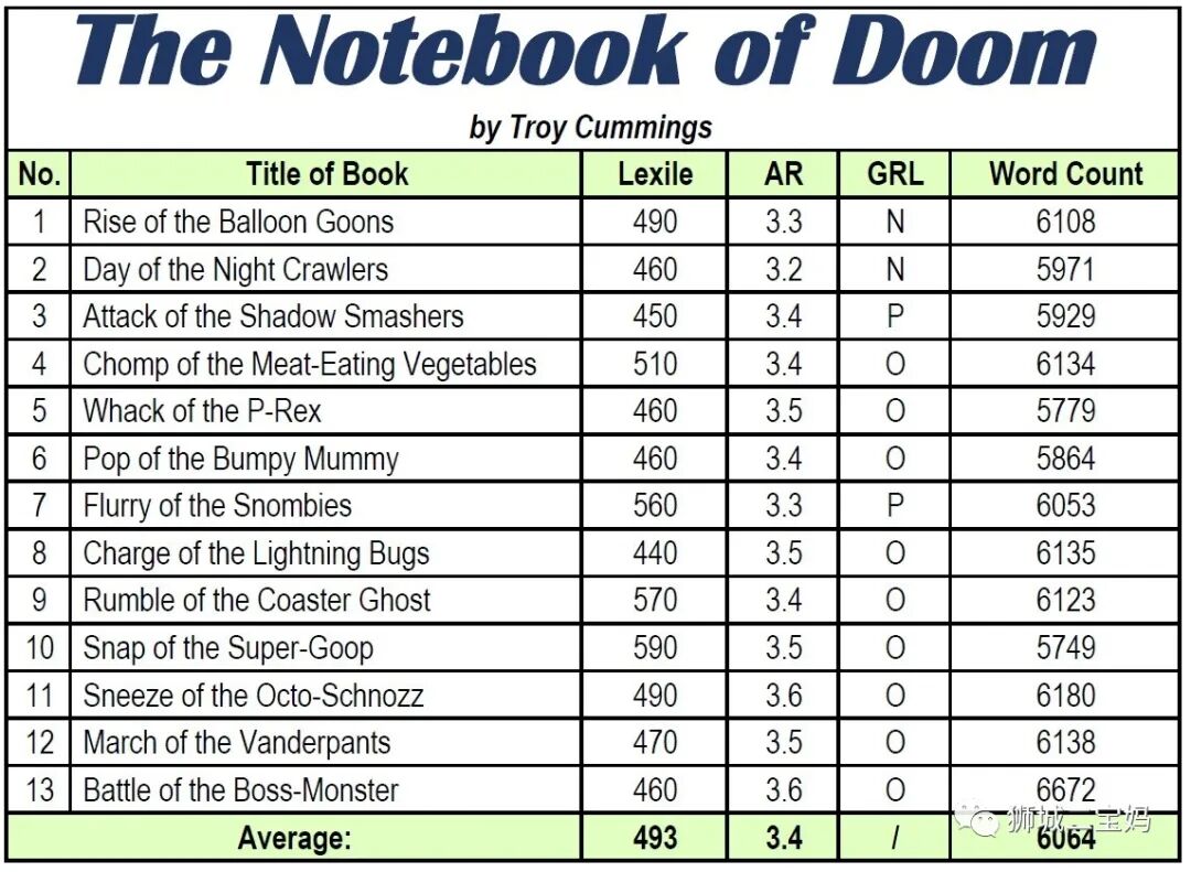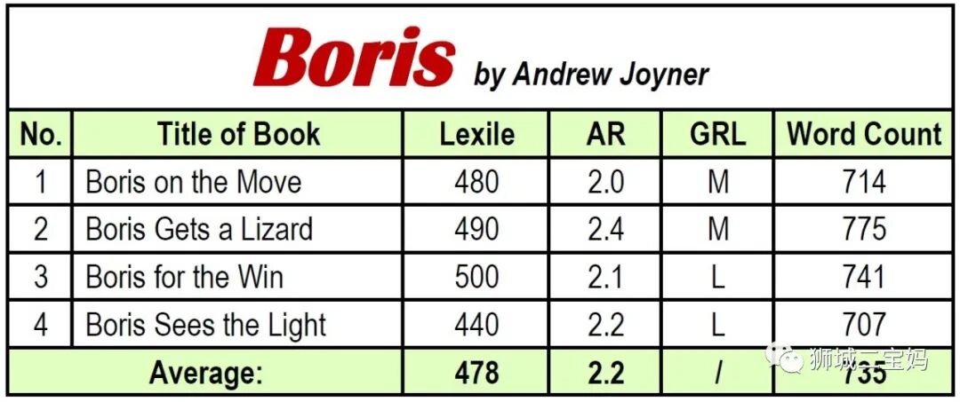 下面是手动统计的系列汇总表,每一类均按从易到难,即AR从低到高的顺序排列,并附有兰斯值和单词数,方便大家检索。