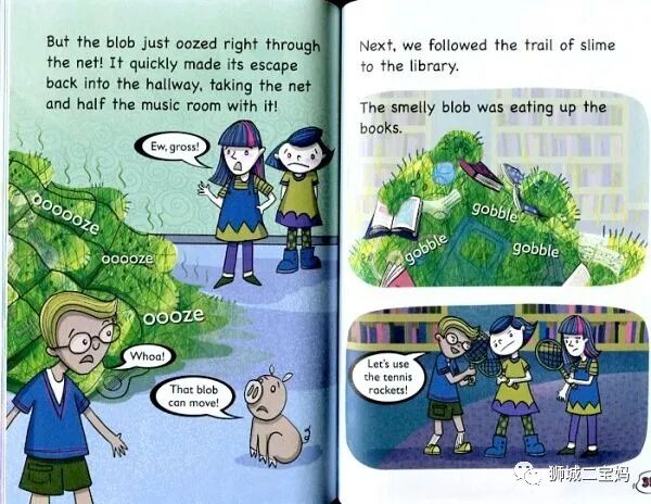 特色点评:该系列充满文字游戏和同音字的梗,一些描述重要情节的单词用横线标注出来,帮孩子迅速get到重点信息。滑稽的动作,搞怪的对话,让人忍俊不禁。