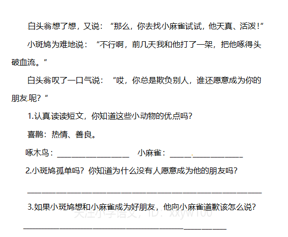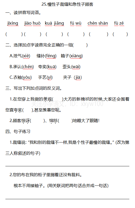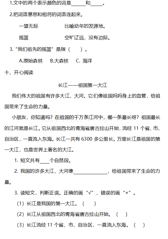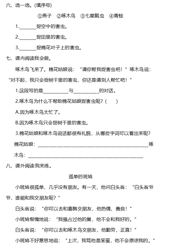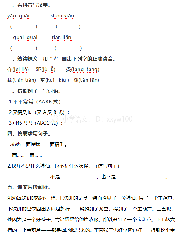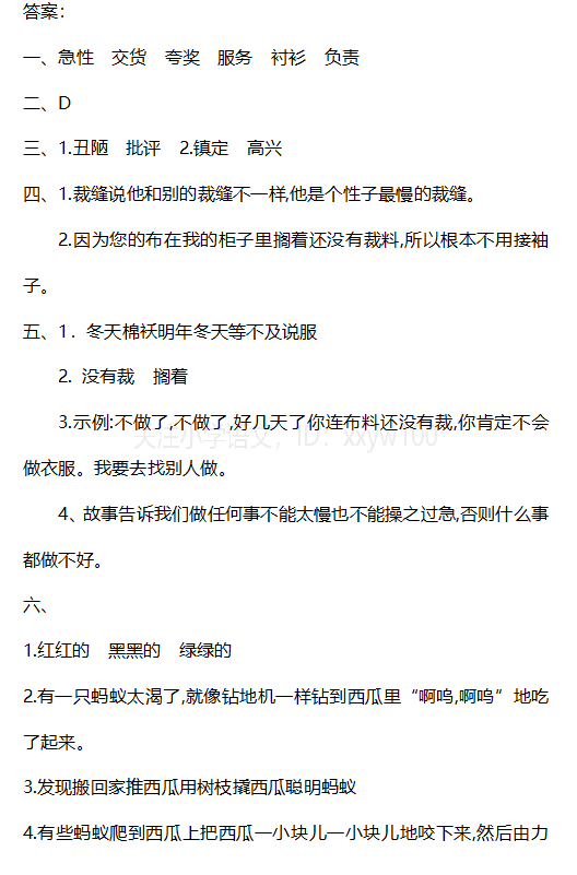 文章-【一课一练】2020春部编版语文1-6年级下册同步练习(附答案)