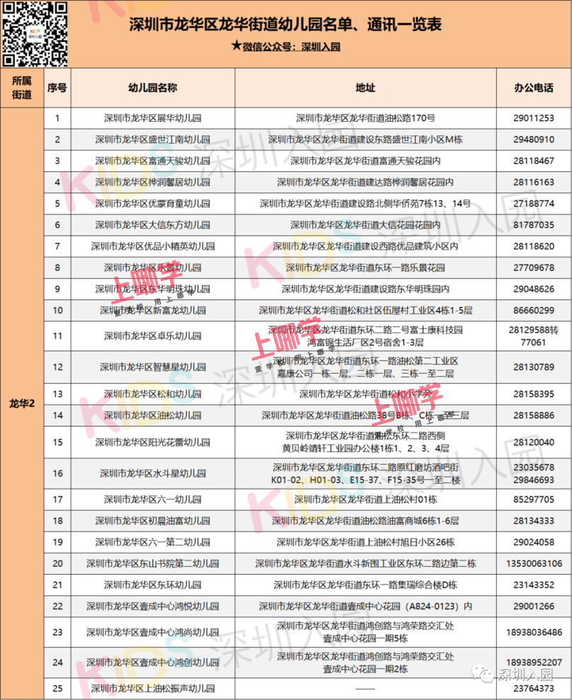 龙华区2020各街道幼儿园名单