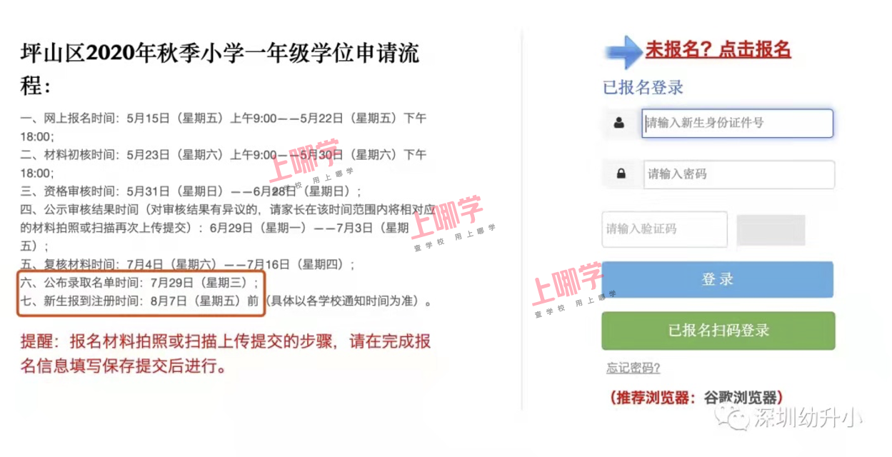 根据坪山报名官网上的信息,注册时间是8月7日前,家长要多留意手机短信。
