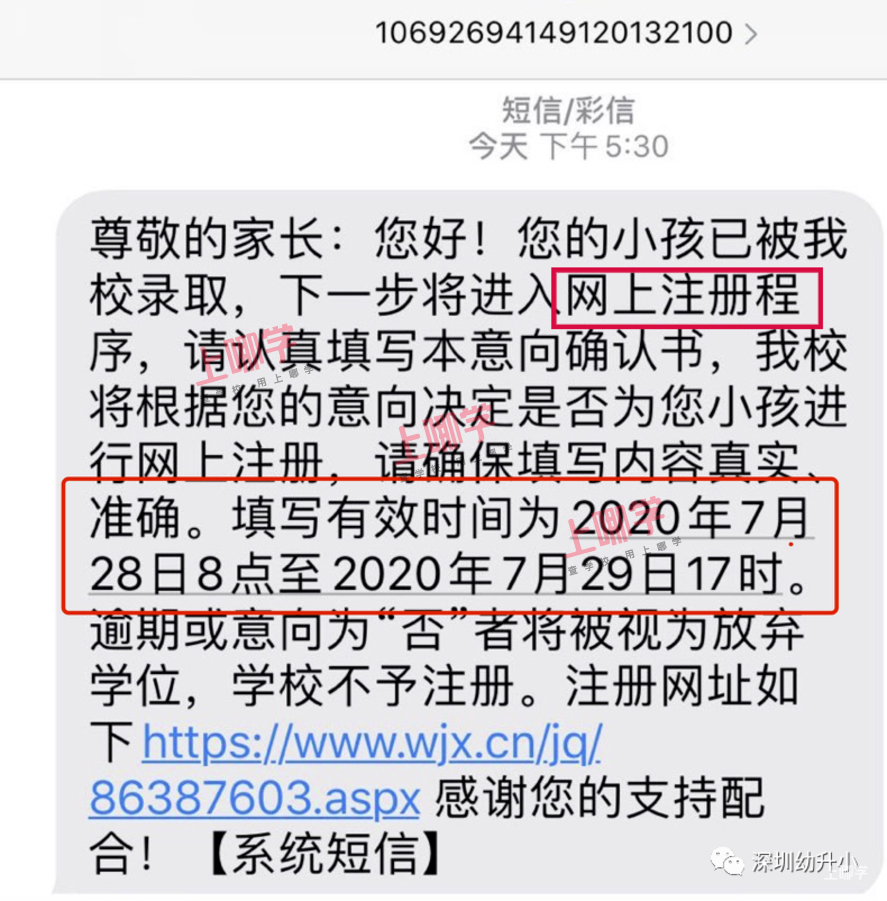 大鹏新区也没有直接规定新生注册时间,由录取学校自行安排,收到短信的家长按照短信准备材料就好,通知短信也欢迎提供给幼升小君一份呀~