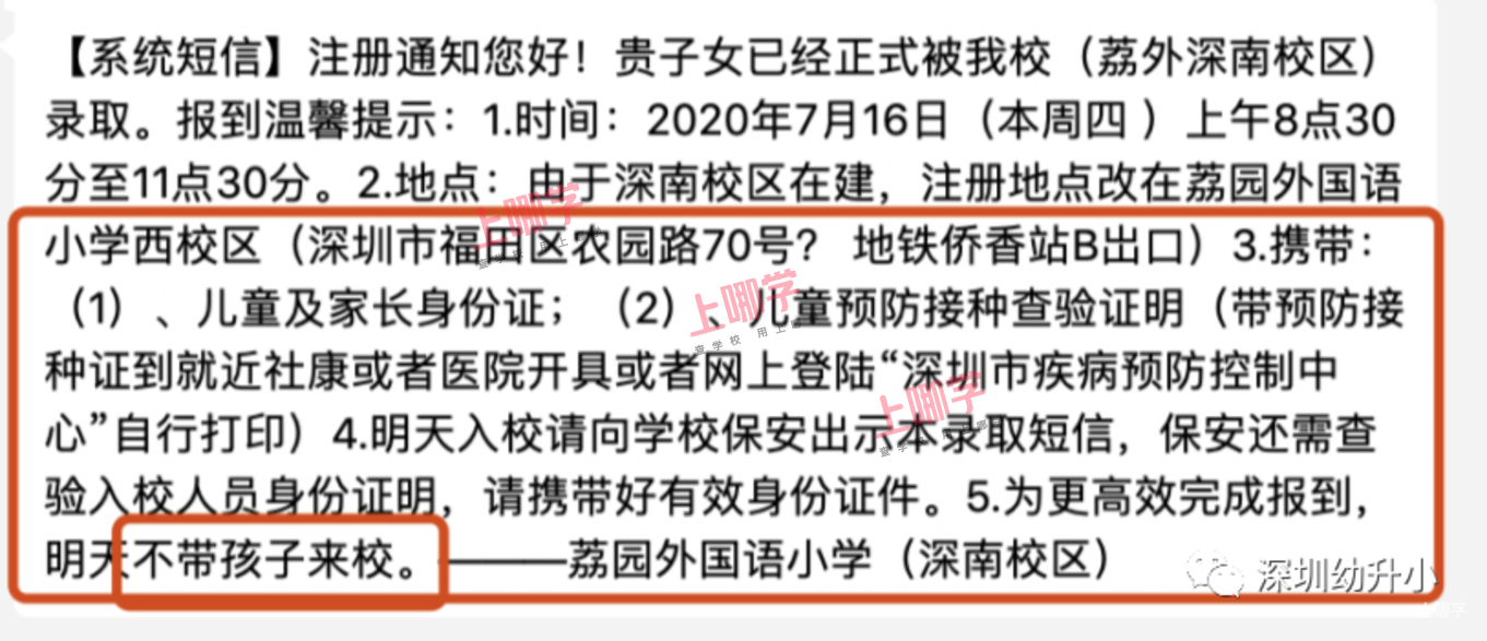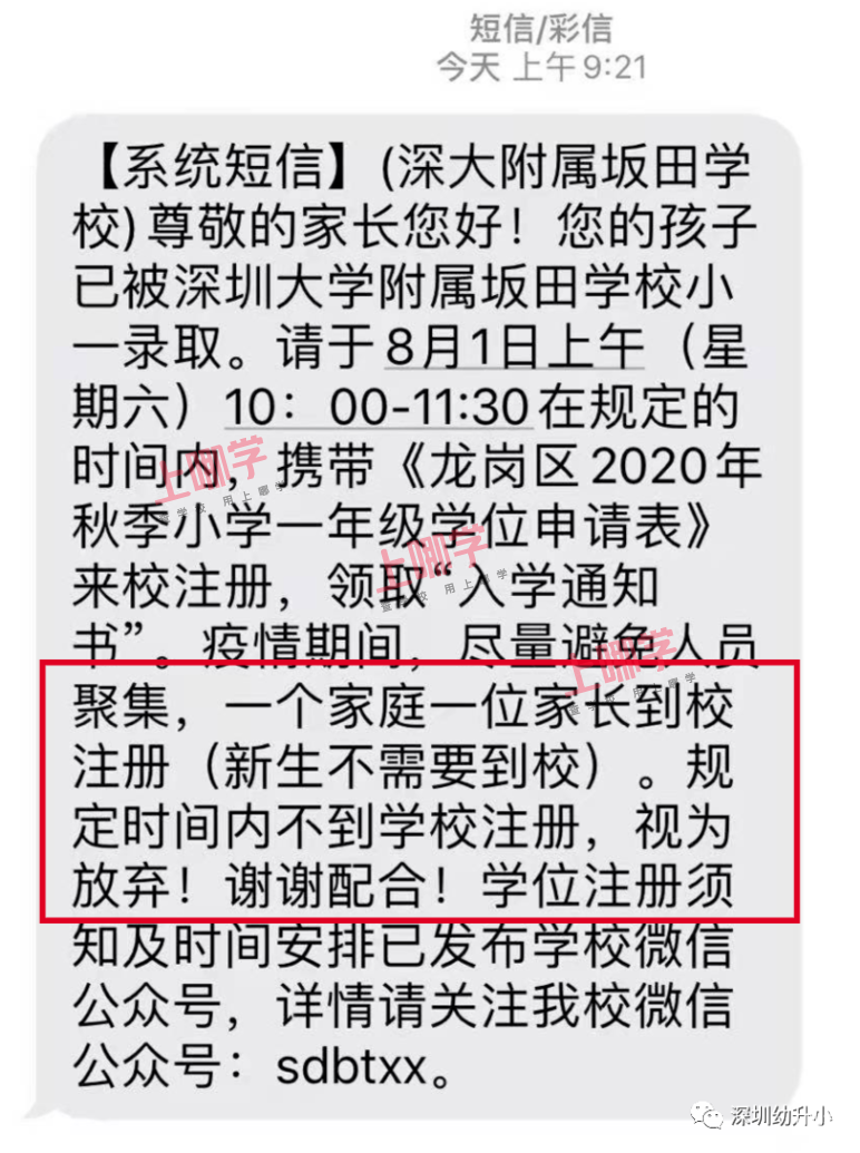 ★深圳幼升小君:龙岗区部分学校明确规定,新生注册时一个家庭一位家长到校即可,孩子也不需要前往。