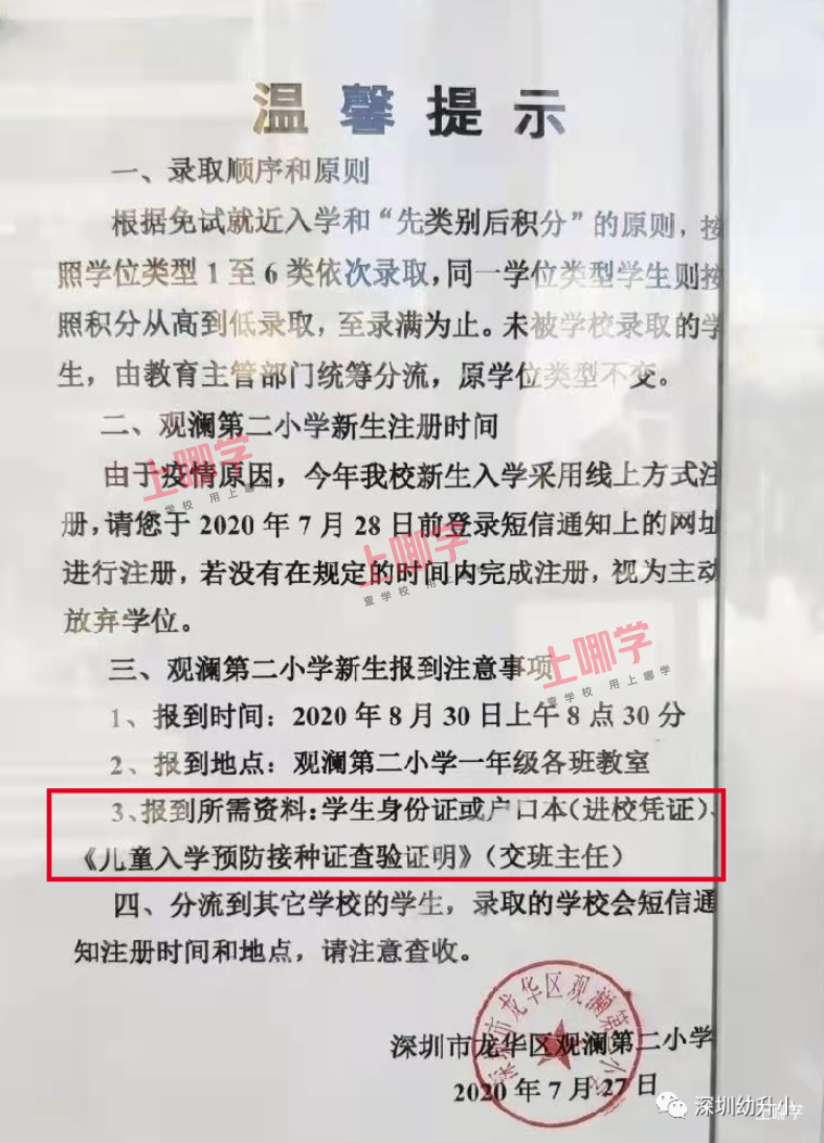 ★深圳幼升小君提醒:部分学校规定新生开学时要提交《儿童预防接种查验证明》,宝安区的家长注册后千万不要忘记了。