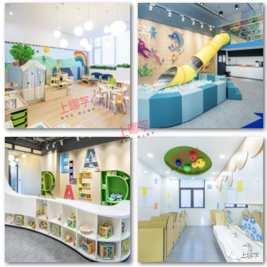 丰富的专用活动室:中英文绘本室、蒙台梭利教室、儿童厨房、舞蹈房、创意美工室、早教室、多功能厅、钢琴房、沙滩戏水池、涂鸦墙、攀岩墙、小城堡等;户外更具趣味性:攀爬绳网、小菜园、小山坡、小山洞、阁楼等,贴近自然的设计满足了幼儿户外锻炼及自然探索的需求。