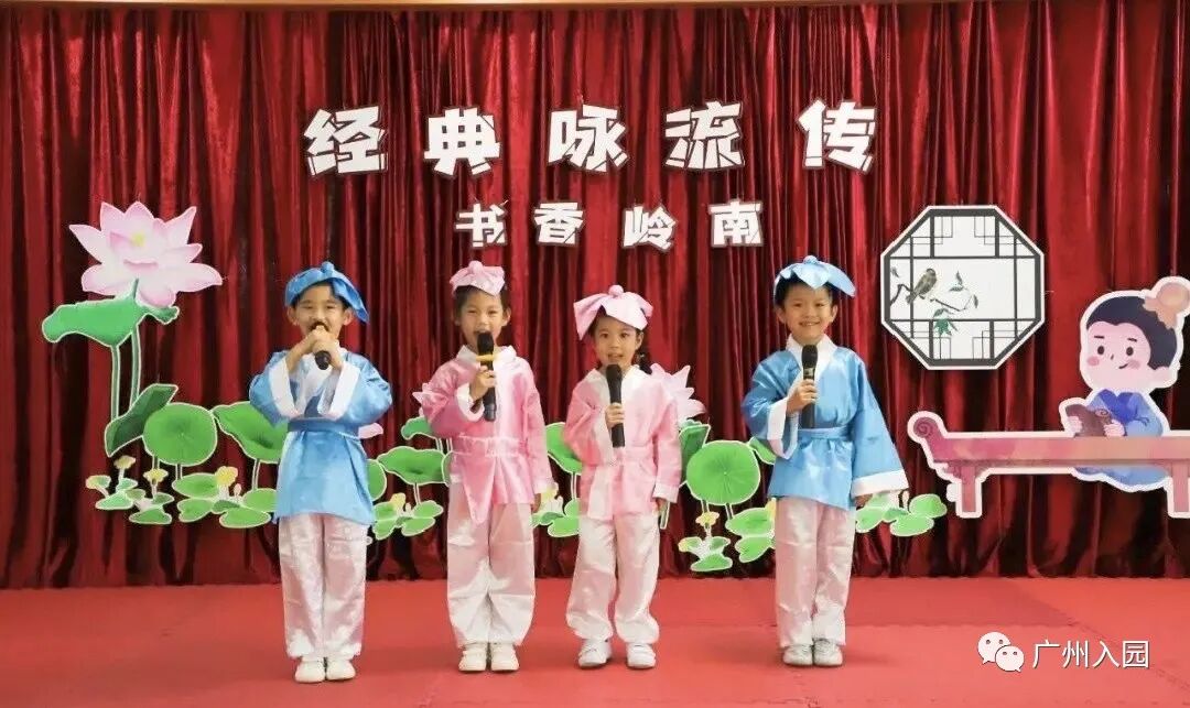 为了加强孩子对于历史经典的了解,岭南幼儿园开展了诵读节活动,除去单纯诵读,还融入到韵律和歌舞表演。