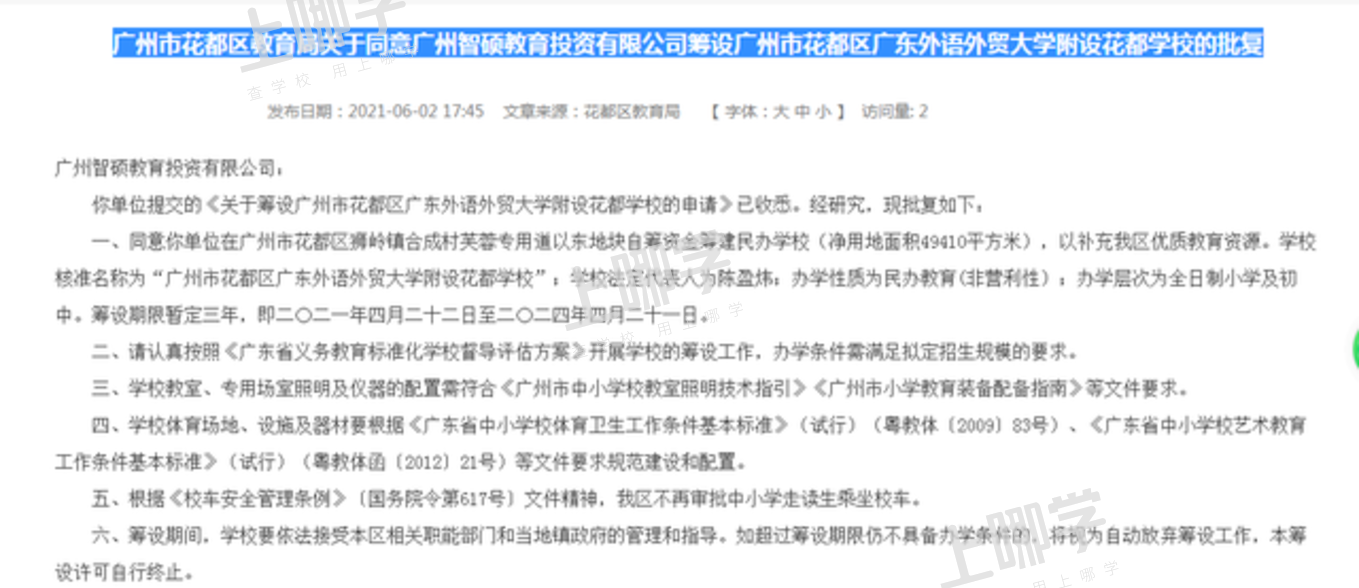 学校地址:广州市花都区狮岭镇合成村芙蓉专用道以东地块自筹资金筹建民办学校