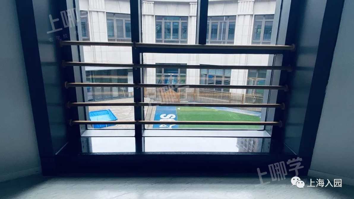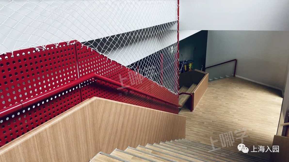除此之外,幼儿园还配有适合小朋友的低矮的楼梯扶手、安全绳网,落地玻璃窗的外围还设置有安全围栏。