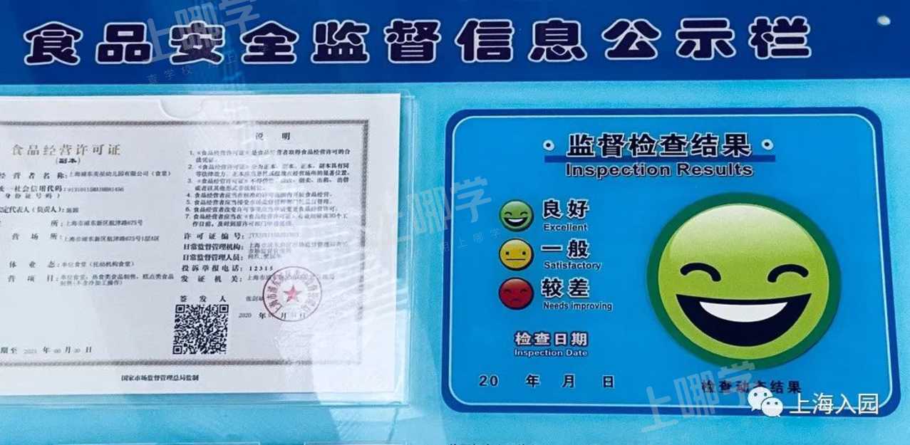 美星有自己的食堂,并且在食品安全监督检查中获得了一个非常优秀的大笑脸。
