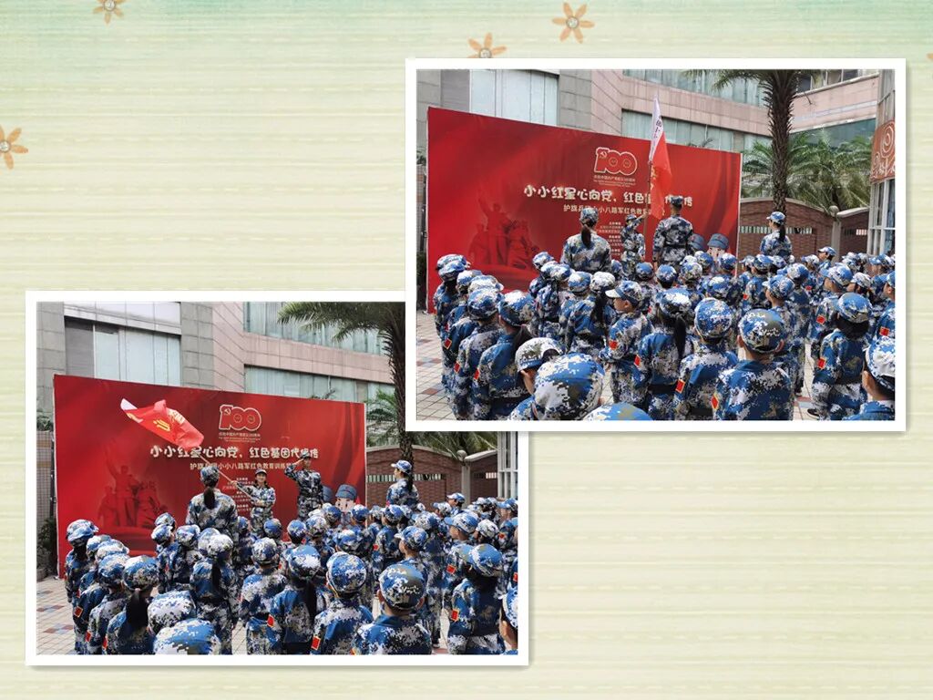 何园长接过训练营营旗,班主任也接过了中队队旗。挥动着代表军人形象的旗帜,这也将是孩子们这几天为之奋斗的写照,希望大家能为这面光荣的旗帜争光添彩!