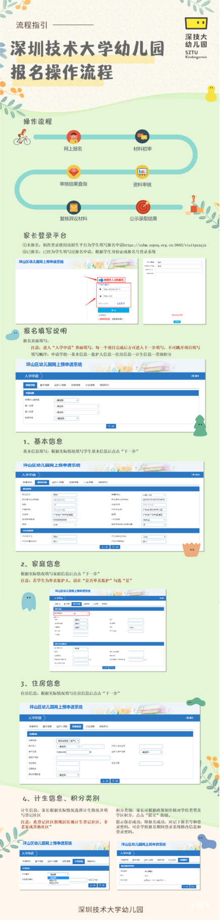2.报名方式:家长须在规定时间内登录坪山区幼儿园网上报名系统:https://zsbm.szpsq.org.cn:9443/visitpsxqjz