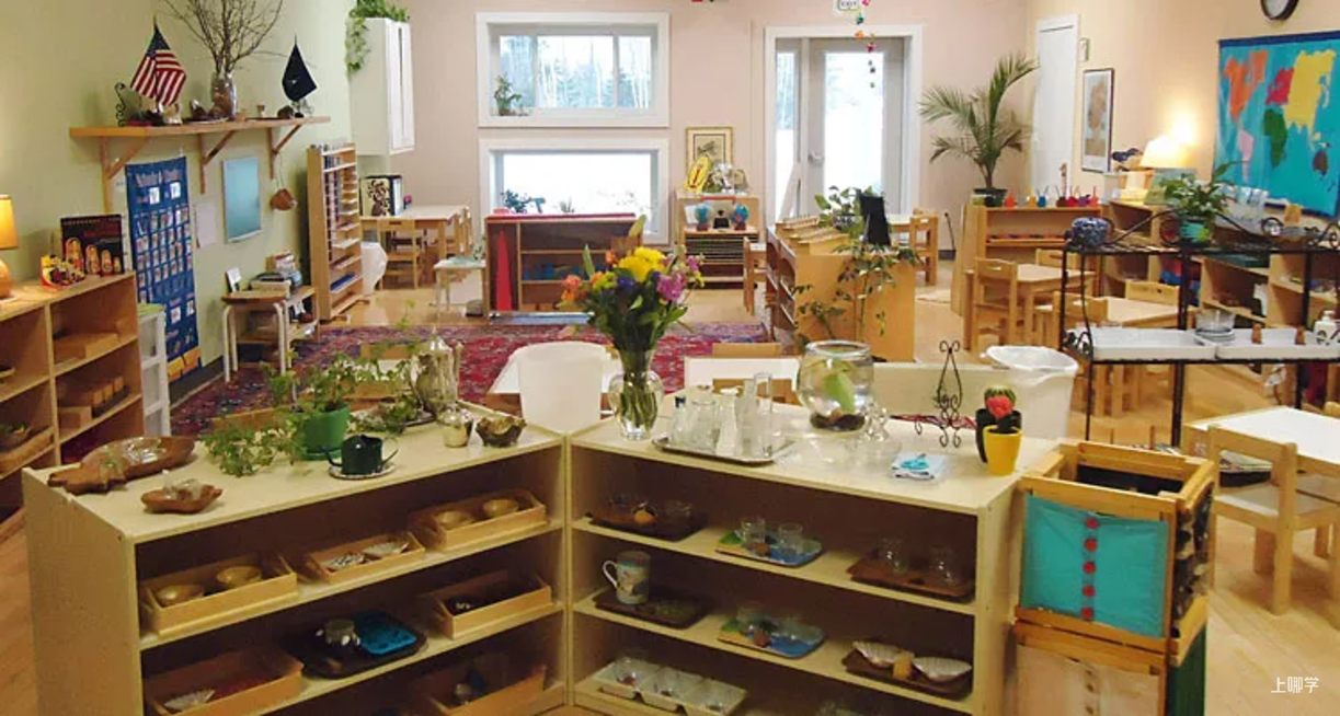 在蒙氏教室里,孩子们操作的教具被称之为“工作”,孩子们操作工作的时间则叫做“蒙氏工作时间”。正统的蒙氏学校,每天都会有至少三个小时的蒙氏工作时间,孩子们可以自由选择工作,独立或者小组进行操作,完成后放回工作架。