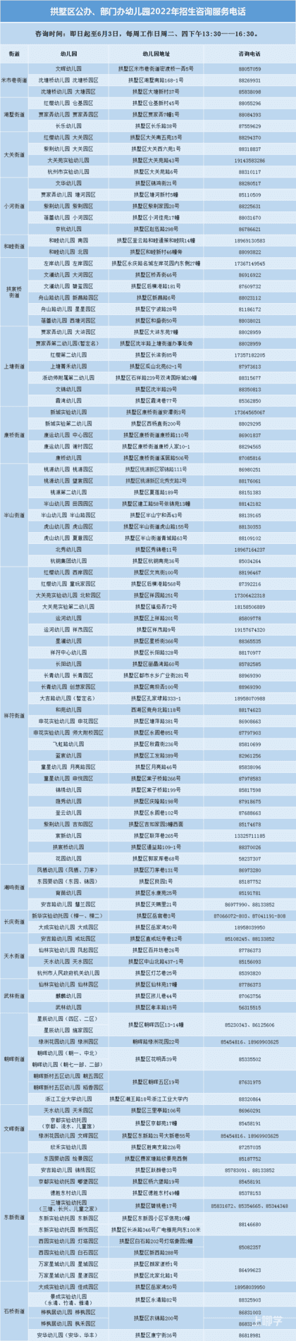 2.拱墅区教育局幼儿园招生咨询电话:88259972