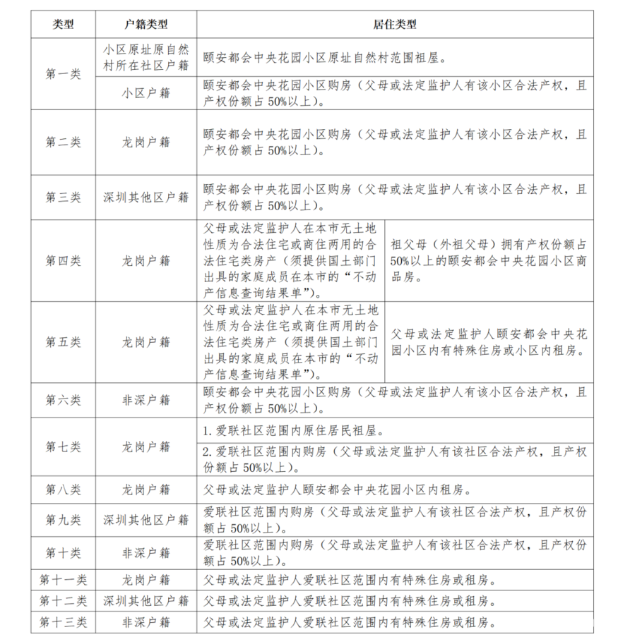 2.同种居住类型的,按小区户籍——招生社区范围户籍——龙岗户籍——深圳其他区户籍——非深户籍排序录取。