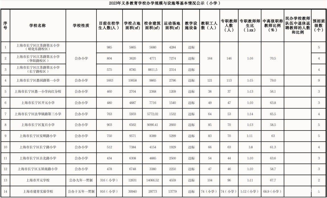 2023年义务教育学校办学规模与设施等基本情况公示(小学)