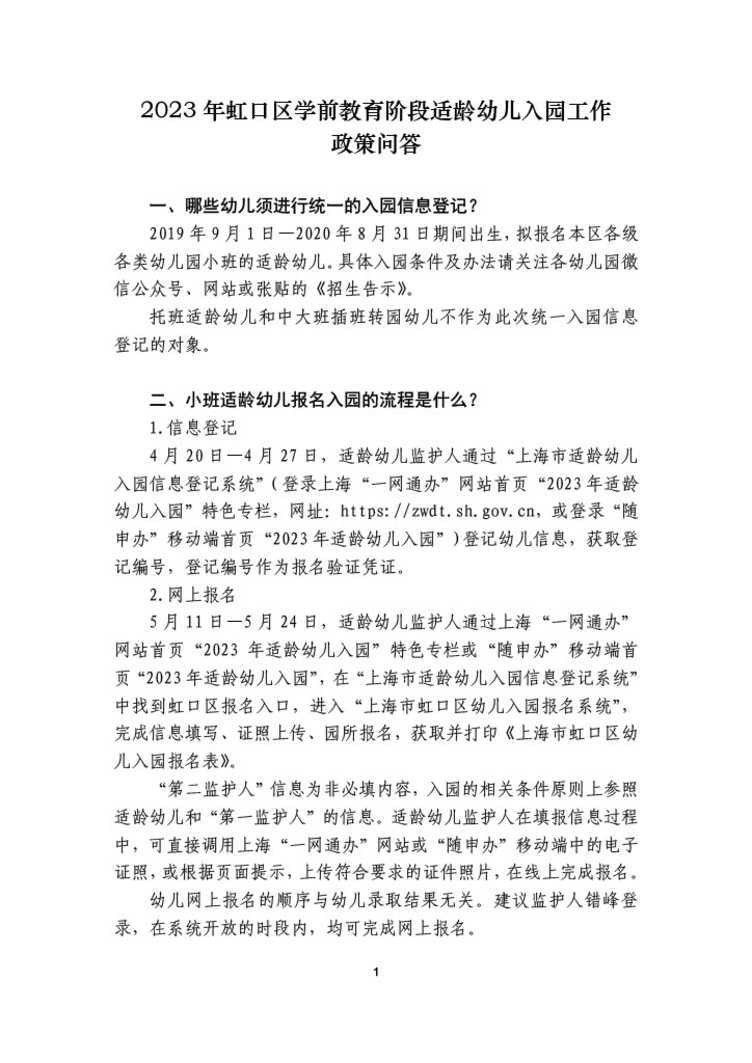 文章-2023年虹口区学前教育阶段适龄幼儿入园工作政策问答