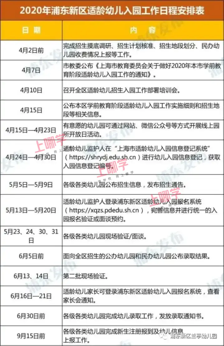 2020学年上海市浦东新区兰亭幼儿园招生工作即将开始啦,根据浦东新区教育局发布《关于2020年本区学前教育阶段适龄幼儿入园工作的实施意见》,今年增加了网上预约环节,请各位爸爸妈妈们注意时间节点哦! 相对就近,免试入园; 网上报名,现场验证。 2020年学前教育阶段适龄幼儿入园工作主要分为信息登记、网上预约、现场验证和录取通知四个阶段。 一、信息登记 (一)入园信息表 4月24日—4月30日,适龄幼儿监护人须在上海市适龄幼儿入园信息登记系统(网址:https://shrydj.edu.sh.cn,也可通过市政府网站“一网通办”栏目进入)进行统一的入园信息登记,登记完成后家长获取入园信息登记表和登记编号(网上登记完成后,系统自动生成的采集编号,在表格左上角会显示哦!),方可进行入园报名和验证。 1.登记对象 2020年信息登记的对象为2016年9月1日至2017年8月31日出生,年满3周岁的适龄幼儿。幼儿园托班、中大班插班转园以及外籍人员子女学校的幼儿不在本次入园信息登记对象范围内。 2.我园招生范围 和融路55弄2-9号、 三彩路52弄2-16号、 三彩路59弄2-17号、 三彩路166弄2-17号 3.登记条件 幼儿和监护人根据本人情况须持有以下证件之一: (1)本市户籍:居民身份证(号); (2)非本市户籍:上海市居住证或上海市居住登记凭证,港澳居民来往内地通行证或港澳居民居住证,台湾居民来往大陆通行证或台湾居民居住证; (3)外籍:护照。 适龄幼儿入园报名须符合以下条件之一: (1.本区户籍,户籍与房产一致的适龄幼儿:按幼儿本区常住户籍地址对口入园。须持有2020年4月30日前办理的招生区域内户籍和相对应的住宅类房产证。户主须是父母、祖父母或外祖父母之一,并全部或共同共有产权。幼儿本人为户主的,房产证产权人须为幼儿本人或其父母,并全部或共同共有产权。 一个门牌号一居住户,原则上三年内只安排一次同校对口入园,符合政策的二孩除外。当入园适龄幼儿人数超出幼儿园招生计划数,按照幼儿户籍迁入时间先后排序入园,超额部分作统筹安排。 (2.本市户籍,人户分离的适龄幼儿:按房产证地址就近入园。须持有2020年4月30日前办理的户籍和招生区域内住宅类房产证。房产证产权人须为幼儿父母或其本人,并全部或共同共有产权。待区域内户籍与房产一致的幼儿安排后,视幼儿园招生情况,按房产证地址就近安排入园。 一个门牌号一居住户,原则上三年内只安排一次同校就近入园,符合政策的二孩除外。 本市户籍廉租房或经济适用房(承租人或买受人须是幼儿父母)的适龄幼儿参照执行。 (3.父母一方持有效期内《上海市居住证》(居住证上的居住地址在本区)且积分达标准分值的适龄幼儿:持有2020年4月30日前办理的招生区域内住宅类房产证的(产权人须为幼儿父母或其本人,并全部或共同共有产权),参照本市户籍、人户分离的幼儿,按房产证地址就近安排入园。无房产证的,凭本区合法居住证明,根据实际居住地址,统筹安排入园。 (4.动迁户适龄幼儿:因动迁原因,户籍尚未迁移至安置地的或居住的安置房产尚未办理产证的,如动迁安置地配套幼儿园已具备招生条件,可凭动迁协议书安置地址就近安排入园。租赁房屋居住的,凭本区合法居住证明,根据实际居住地址,统筹安排入园。 (5.本市外区户籍,在居住地无相应房产证的适龄幼儿:凭本区合法居住证明,根据实际居住地址,统筹安排入园。 (6.其余符合条件的来沪人员适龄随迁子女:幼儿本人须持有效期内《上海市居住证》或《居住登记凭证》,父母一方须持有效期内《上海市居住证》,且一年内参加本市职工社会保险满6个月(2019年7月1日至2020年6月30日,不含补缴,因疫情防控需要允许补缴的除外)或连续3年(从首次登记日起至2020年6月30日)在本区街镇社区事务中心办妥灵活就业登记。 来沪人员适龄随迁子女,申请在本区就读的,其所持的居住证上的居住地址,应与其父母保持一致,且居住地址在本区。持有2020年4月30日前办理的招生区域内住宅类房产证的(房屋产权人须是幼儿父母或其本人,并全部或共同共有产权),按房产证地址,统筹安排入园。无房产证的,凭本区合法居住证明,根据各公民办幼儿园第一批报名验证情况,统筹安排至尚有余额的公办幼儿园或民办三级幼儿园。 (7.香港、澳门、台湾适龄幼儿:香港、澳门幼儿须持本人香港或澳门永久居民身份证、港澳居民来往内地通行证和《本市境外人员住宿登记表》或《中华人民共和国港澳居民居住证》;台湾幼儿须持本人台湾居民来往大陆通行证和《本市境外人员住宿登记表》或《中华人民共和国台湾居民居住证》,根据实际居住地址,统筹安排入园。 (8.外籍适龄幼儿:外籍幼儿须持本人有效签证外国护照(须有中华人民共和国外国人居留许可页,且有有效往来签证)和《本市境外人员住宿登记表》,根据实际居住地址,统筹安排入园。 (9.特殊幼儿:有特殊教育需求的幼儿须持有本区户籍,可到爱心幼儿园或上南三村幼儿园、童心幼儿园、临港新城海音幼儿园、致立学校开设的学前特教班申请入园。 (10.其他符合入园条件的幼儿:除上述情况以外,其他符合在本区入园条件的幼儿,视实际情况统筹安排入园。 6月5日前,面向全区招生的公办幼儿园和民办幼儿园须通过网站、微信公众号等各种途径向社会公布录取结果。 6月13日、14日,第二批现场验证。 4.信息确认 适龄幼儿监护