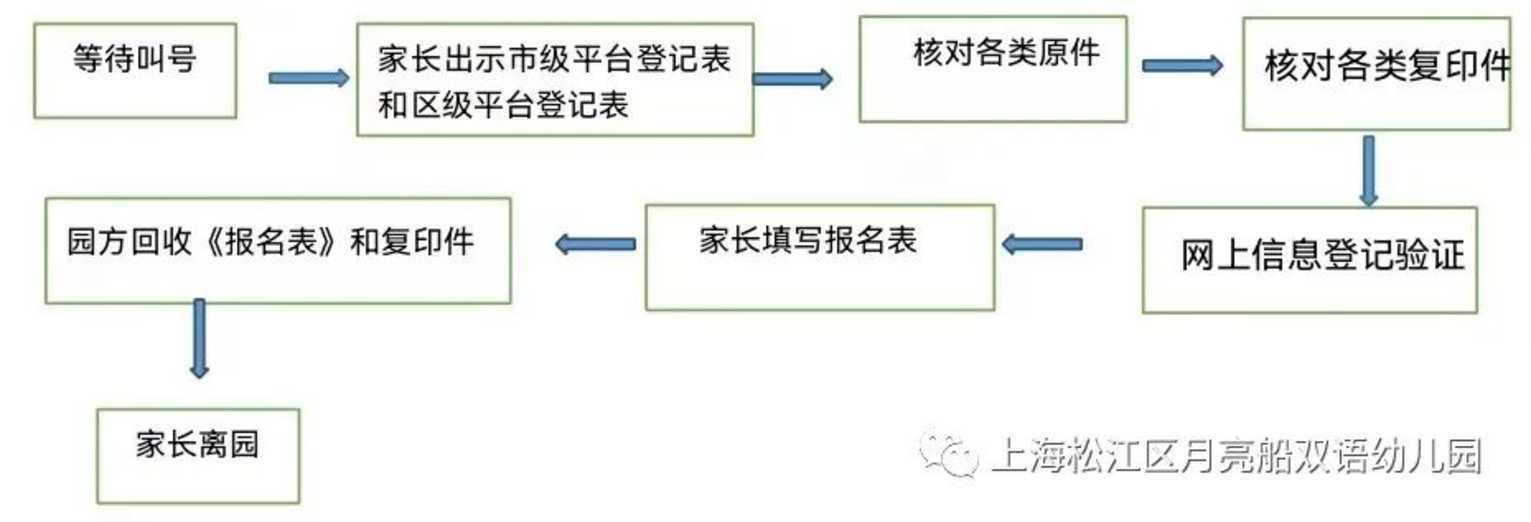 小班家长携带:《2021年上海市适龄幼儿入园信息登记表》、《2021年松江区幼儿园入园报名登记表》及相关报名材料来园报名验证。