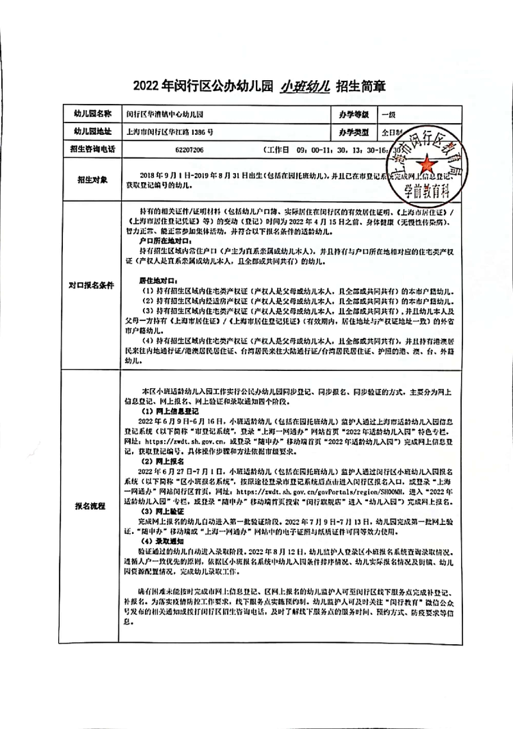 示范园招生: 地段对口招生,中福会浦江幼儿园、中福会托儿所闵行校区面向全区提前自主招生