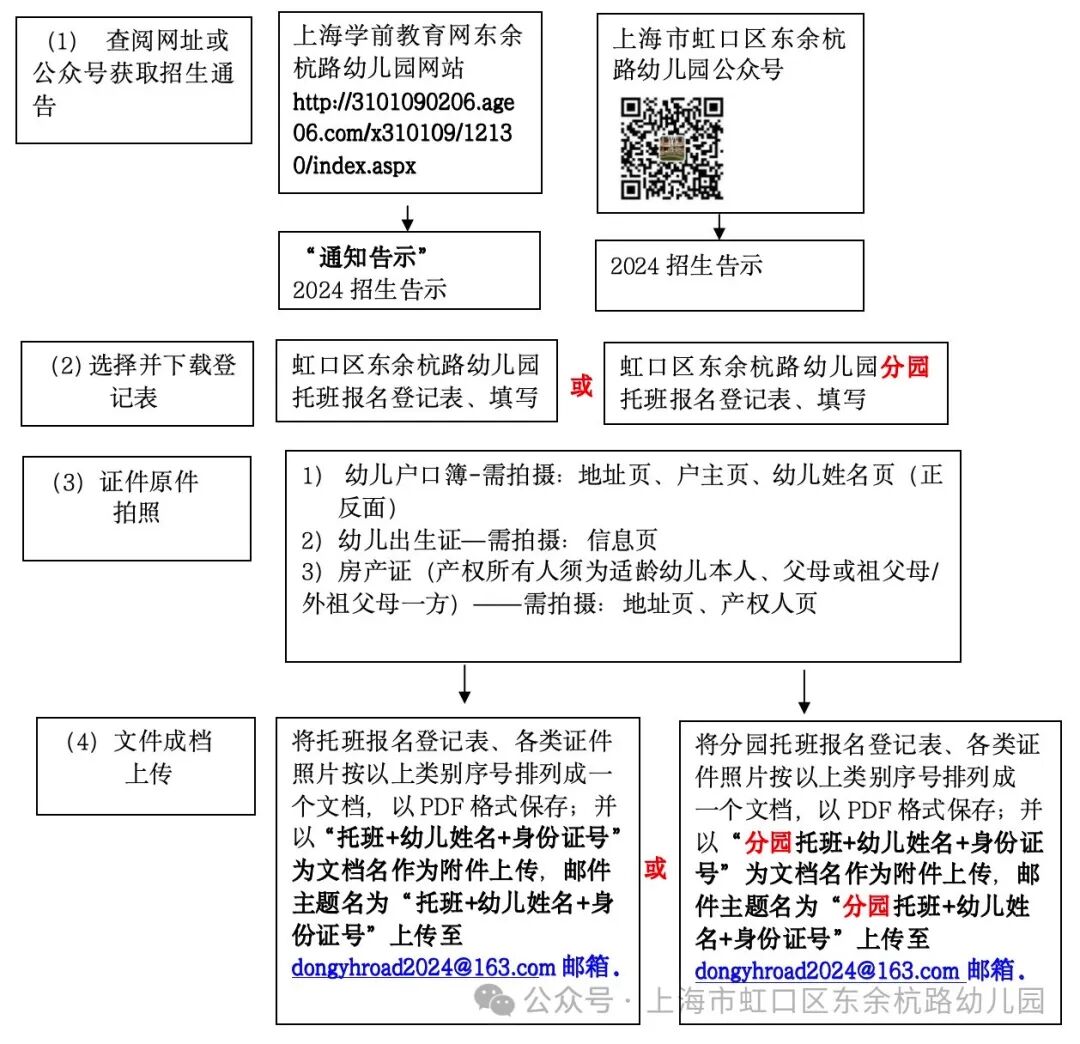 (3)虹口区东余杭路幼儿园招生告示通过上海学前教育网www.age06.com 、虹口区东余杭路幼儿园微信公众号、园张贴等方式公示。