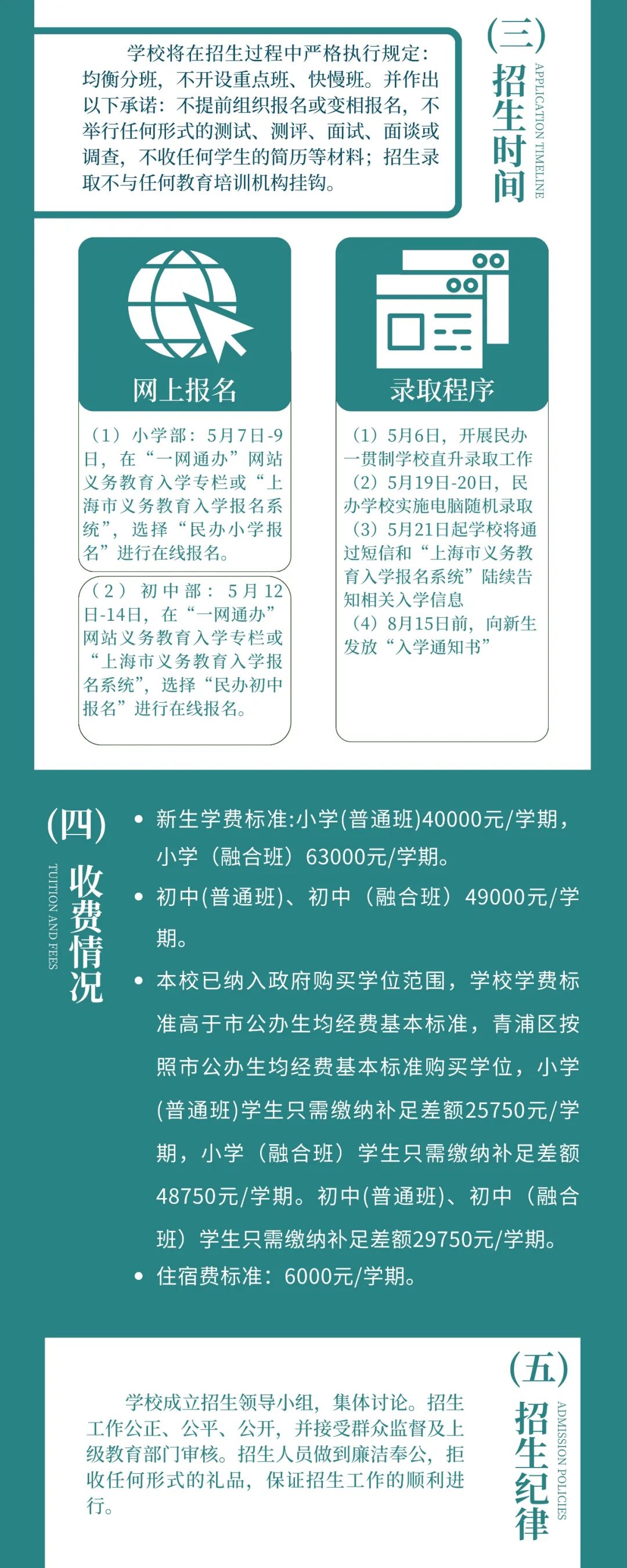 >初中部:5月6日——5月8日,在 “上海义务教育入学报名系统”,选择“民办初中报名”进行在线报名。