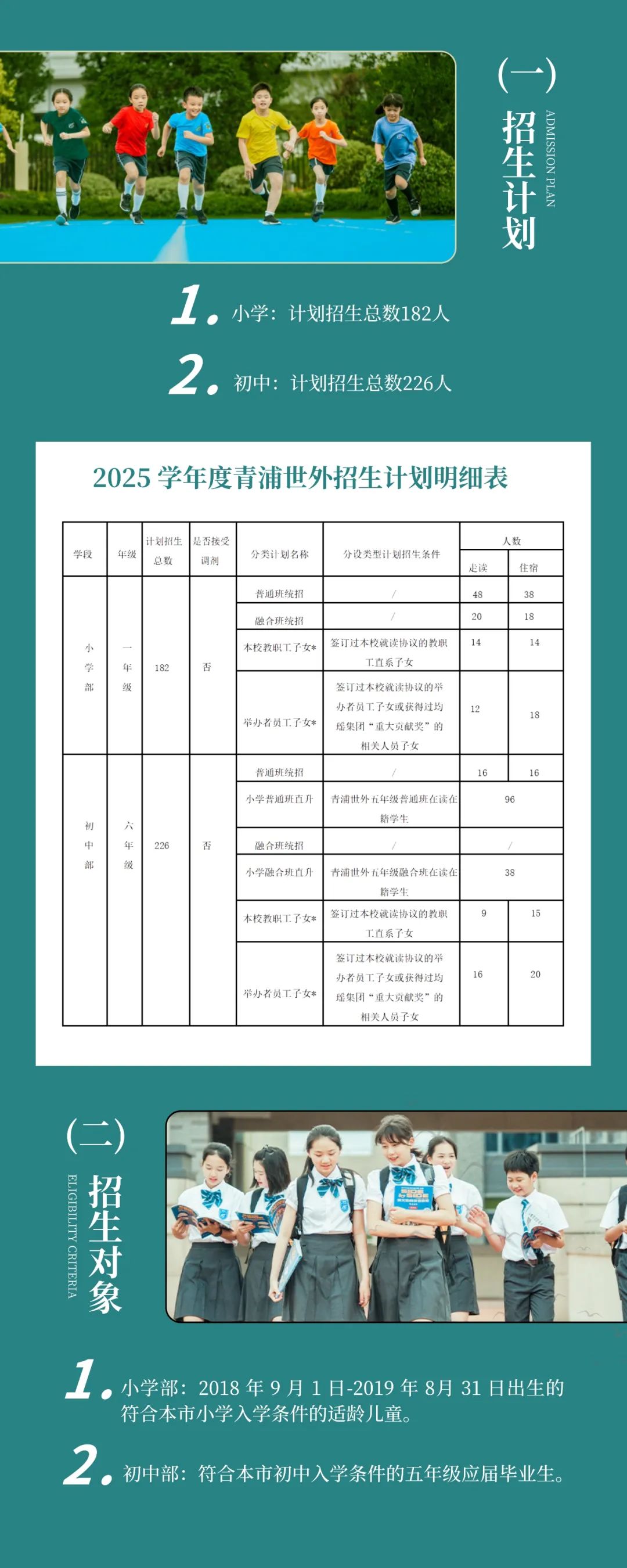 >初中部:具有本市常住户口,或在本市小学就读的五年级应届毕业生。