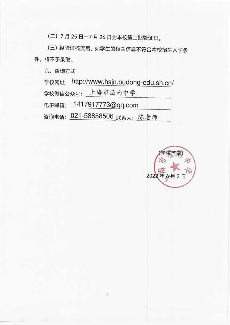 依据《上海市教育委员会关于2020年本市义务教育阶段学校招生入学工作的实施意见》和《浦东新区教育局关于2020年本区义务教育阶段学校招生入学工作的实施意见》,我校的招生对象为:对口招生地域内五年级应届小学毕业生。学校不组织报名或变相报名,不举行任何形式的测试、测评、面试、面谈或调查,不收取任何学生的简历等材料;本校均衡分班,不开设重点班、快慢班、特色班、实验班。学校的招生录取工作不与任何教育培训机构挂钩。校园网网址:http://www.hsjn.pudong-edu.sh.cn