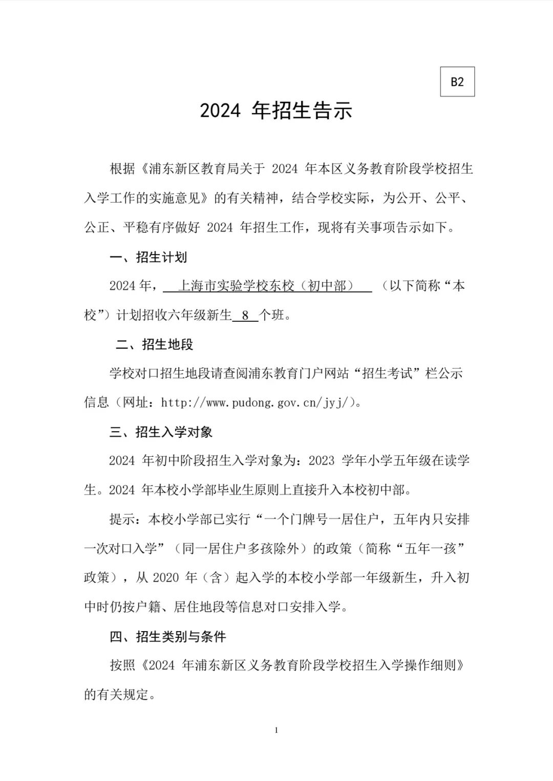 上海市浦东新区公办上海实验学校东校2020年招生简章