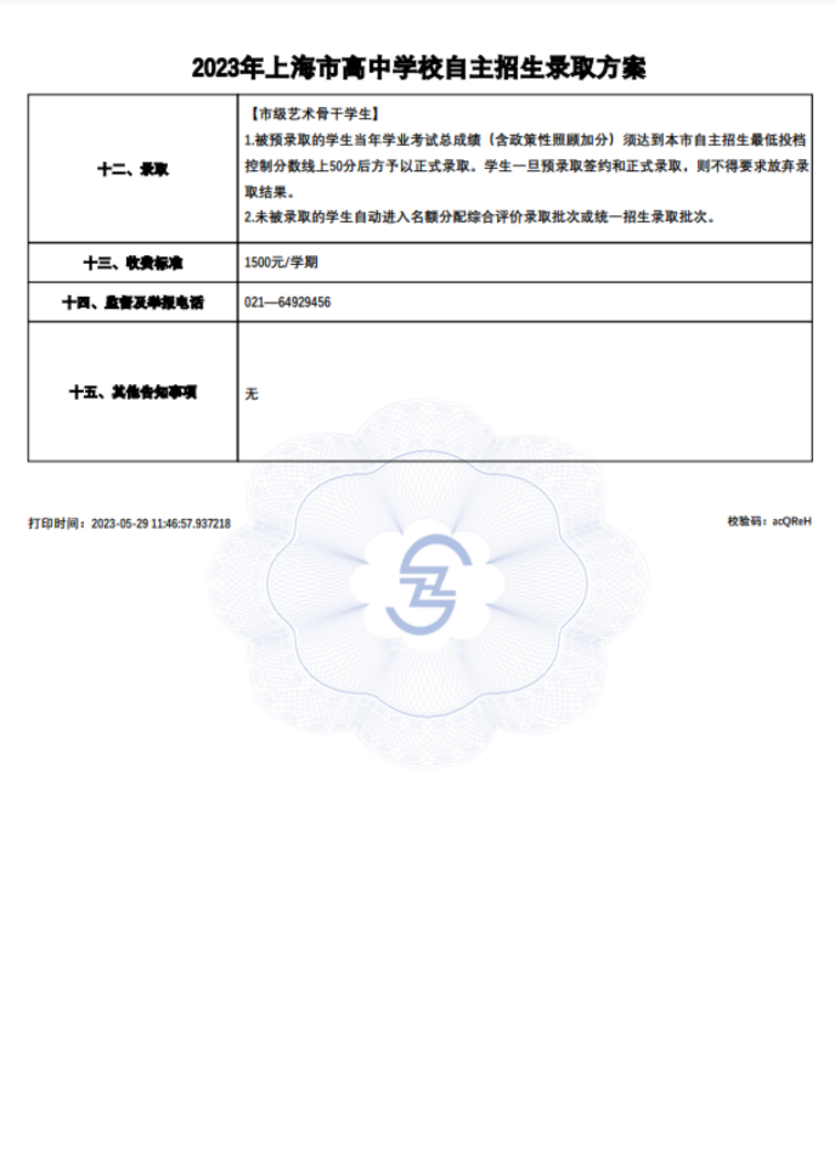 * 被我校预录取的自荐生,需参加2020年初中毕业统一学业考试,录取总分须达到市统一划定的高中“提前招生录取”最低控制分数线,方予以正式录取。