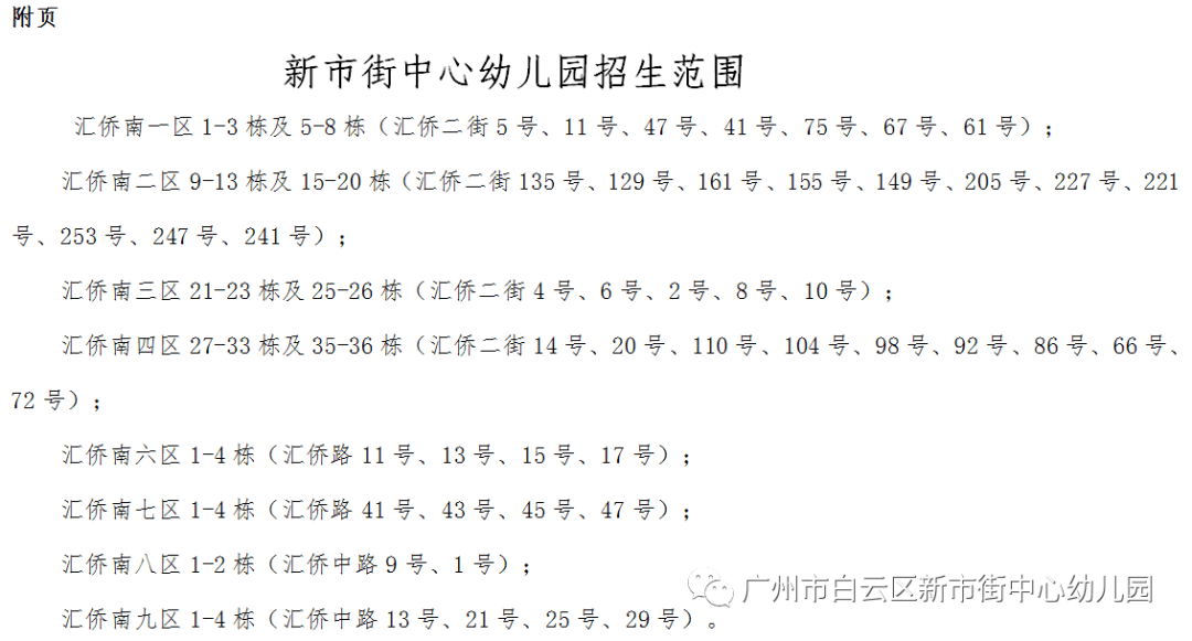特别说明:抗击疫情一线医疗卫生工作人员适龄子女及消防救援队伍人员适龄子女以相关部门核准名单为准。 备注:1.其他特殊情况由区以上教育行政部门根据有关政策确定。2.因上级政策调整等导致政策性照顾学生对象或证明材料发生变化时,由市教育行政部门另行补充发文。3.杜绝弄虚作假,证明单位对其出具证明的真伪性及其后果负责。 六、报名要求: 符合条件的适龄儿童由父母或其他监护人,在规定报名时间内(逾期不报名的将视为自动放弃学位)登陆广州市白云区幼儿园招生服务平台完成报名,具体上传提交材料如下: (一)业主子女需提交有效房产资料:房产证,如房产证暂无法提供,可出具购房合同等能佐证业主身份的材料。 (二)幼儿户口簿(首页、户主页、幼儿个人页)、出生证;父母一方或其他法定监护人户口簿(首页、户主页、监护人个人页)、身份证等。 (三)若适龄儿童长期与祖父母居住且房产属祖父母(含外祖父母)所有的,需提供能证明适龄儿童与祖父母(含外祖父母)祖孙关系的有关材料和适龄儿童父母在广州市内无房产证明材料。 (四)家长要保证报名上传的材料真实有效、完整,并提交亲笔签名的相关承诺书(承诺书模板请登录报名系统下载)。如填报及上传的信息材料存在弄虚作假、无效、不准确、不全面等情况而影响幼儿入学,将由家长承担责任。 具体报名上传资料要求请按照报名系统要求完成提交,纸质材料和其余资料将于幼儿入学后另行通知补交查验。 (五)幼儿户籍变更截止时间要求: 符合条件参加幼儿园报名的幼儿,户籍变更截止日期为2020年5月24日前(以提供户口本为准)。 七、本园对应小区业主范围: 汇侨新城南区(南一到南九),具体见附页。 八、温馨提示:网上招生报名系统将于2020年5月14日 9 :00 至15日 17 :00 面向业主子女开放进行测试,届时家长可登陆网址:https://yeyzs.baiyun.edu.cn,参加报名测试。测试数据跟电脑派位无关,报名测试结束后,系统将关闭并清理所有登记的信息。各家长需在正式开放报名时间内重新注册完成网上报名。 幼儿园招生咨询电话:020-86262869 何老师、茹老师 招生监督电话 :020-86307817(新市教育指导中心)