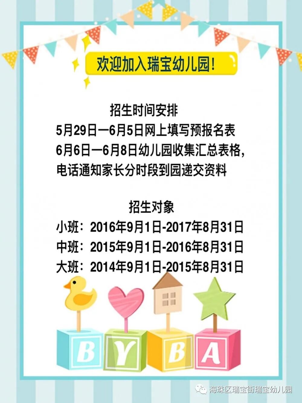 广州市海珠区瑞宝街瑞宝幼儿园是一所民办全日制幼儿园。建办于1987年,原为村办园,后因改制于2003年8月至今由我园行政进行管理;并于2005年5月被评为海珠区达标级幼儿园;2012-2013年被认定为普惠性幼儿园;2013年10月我园和海珠区南石头街侨燕苑幼儿园合并,并以瑞宝幼儿园为总园区,2014年3月被区评为规范化幼儿园。期间,我园的发展得到各级领导的热切关怀和指导,园舍环境不断改善,教育教学质量得以不断提升。得到上级领导和家长,以及社会的认同,是一所家长和幼儿信赖及喜爱的幼儿园。 我园通过加大对《3-6岁儿童学习与发展指南》的宣传,提高家长、老师对幼儿发展、幼儿教育规律的认识。利用家长开放日、家长会、宣传栏等形式,让全社会充分认识幼儿教育的宗旨、意义、形式和目的,调整社会对幼儿园的评价标准。