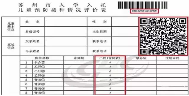 《苏州市入托入学儿童预防接种情况评价表》(原件核查,不需要复印)