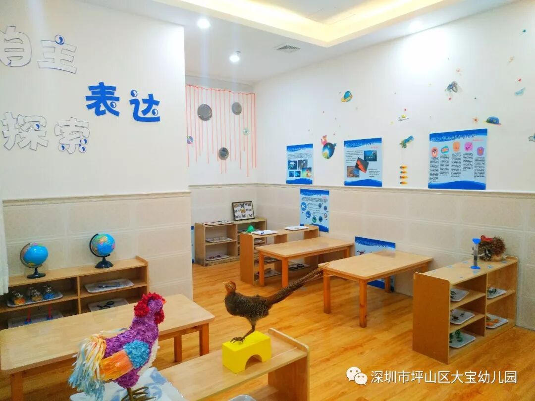深圳市坪山区大宝幼儿园是大宝机构旗下的第四分园,按省级标准设立的一所创新型,全日制的幼儿园,全园环境优美,欧式风格设计。幼儿园座落于深圳市坪山区龙田街道龙田社区石田路13号,占地4000多平方米,户外场地1800多平方米。幼儿园园内环境优美、布局合理、园舍洁净、设备齐全,室外配有大型玩具,戏水池,沙池,种植区。园内设有12个班级的规模,班级配置原木桌椅,钢琴空调,多媒体电脑教学,教室宽敞明亮。本园设有9个功能室(美工室,音乐室,舞蹈室,科学室,游戏室,阅读室,乐高室,体育室,会议室)我们将打造一所国际化,现代化的幼儿园。全力为周边社区居民的孩子提供优质学前教育服务及丰富健康的幼儿伙食,让您的孩子度过一个快乐的童年。