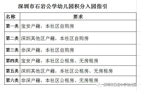 深圳市石岩公学幼儿园 2020年秋季学期招生简章 根据《深圳市教育局关于做好 2020 年秋季学期全市幼儿园招生工作的通知》相关要求,石岩公学幼儿园2020 年秋季学期招生工作安排如下: 1.基本情况 深圳市石岩公学幼儿园成立于1995年4月,是经深圳市教育局批准设立的股份制民办幼儿园(办学许可证号:144030034000021)。 幼儿园位于深圳市宝安区石岩街道育才路8号,石岩公学校园内,是非小区配套、非普惠幼儿园。 石岩公学幼儿园是广东省一级幼儿园。园所空气清新,环境优美,设施设备配套齐全,并享有与大公学资源共享的突出优势。 幼儿园先后荣获全国优秀民办幼儿园、广东省教育教学成果一等奖、广东省青年文明号单位、深圳市优质办学幼儿园、深圳市卫生保健优秀幼儿园、深圳市“五四”红旗团支部、宝安区优质特色幼儿园、宝安区平安校园创建优秀单位、宝安区幼儿园室内外环境一体化课程资源特色示范幼儿园、宝安区示范教研组、宝安区教育系统先进团支部、石岩街道先进义工组织等奖项荣誉。 核定办学规模为19个班,收费标准:保教费1340元/月;伙食费380元/月;被褥费600元/套;园服费650元/六套。 2.招生对象 2020年秋季学期计划招生130人 小小班:2017年9月1日(含9月1日)—2018年2月28日(含2月28日)之间出生的儿童,共23名。 小班:2016年9月1日(含9月1日)—2017年8月31日(含8月31日)之间出生的儿童,共79名。 中班:2015年9月1日(含9月1日)—2016年8月31日(含8月31日)之间出生的儿童,共9名。 大班:2014年9月1日(含9月1日)—2015年8月31日(含8月31日)之间出生的儿童,共19名。 3.招生范围 以宝安区官田社区石岩街道的适龄儿童为主。 —4.学位类型 5.招生程序 (一)报名时间 (6月13日-7月4日) (二)材料核验 (7月5日—7月11日) (2)现居住地街道办事处房屋租赁管理部门登记备案的本社区住宅用途《房屋租赁凭证》;幼儿父母无房产证明。 (3)在住房建设部门登记备案的本社区政策性住房的《购房合同》或《租赁合同》。 (4)本社区其他住房有效证明材料。 享受优惠政策的烈士、现役军人、消防救援、公安英模和因公牺牲伤残警察的适龄子女报名时需持有相关政策证明材料。 4.提供儿童近期一寸免冠照、全身生活照(尺寸不限)。 享受优惠政策的高层次人才适龄子女入园执行《关于印发<深圳市高层次人才“一站式”服务暂行办法>和<深圳市高层次人才“一站式”服务业务指南>的通知》(深组通[2013]105号)等文件相关规定。 (三)录取方式 6.温馨提示 ▼