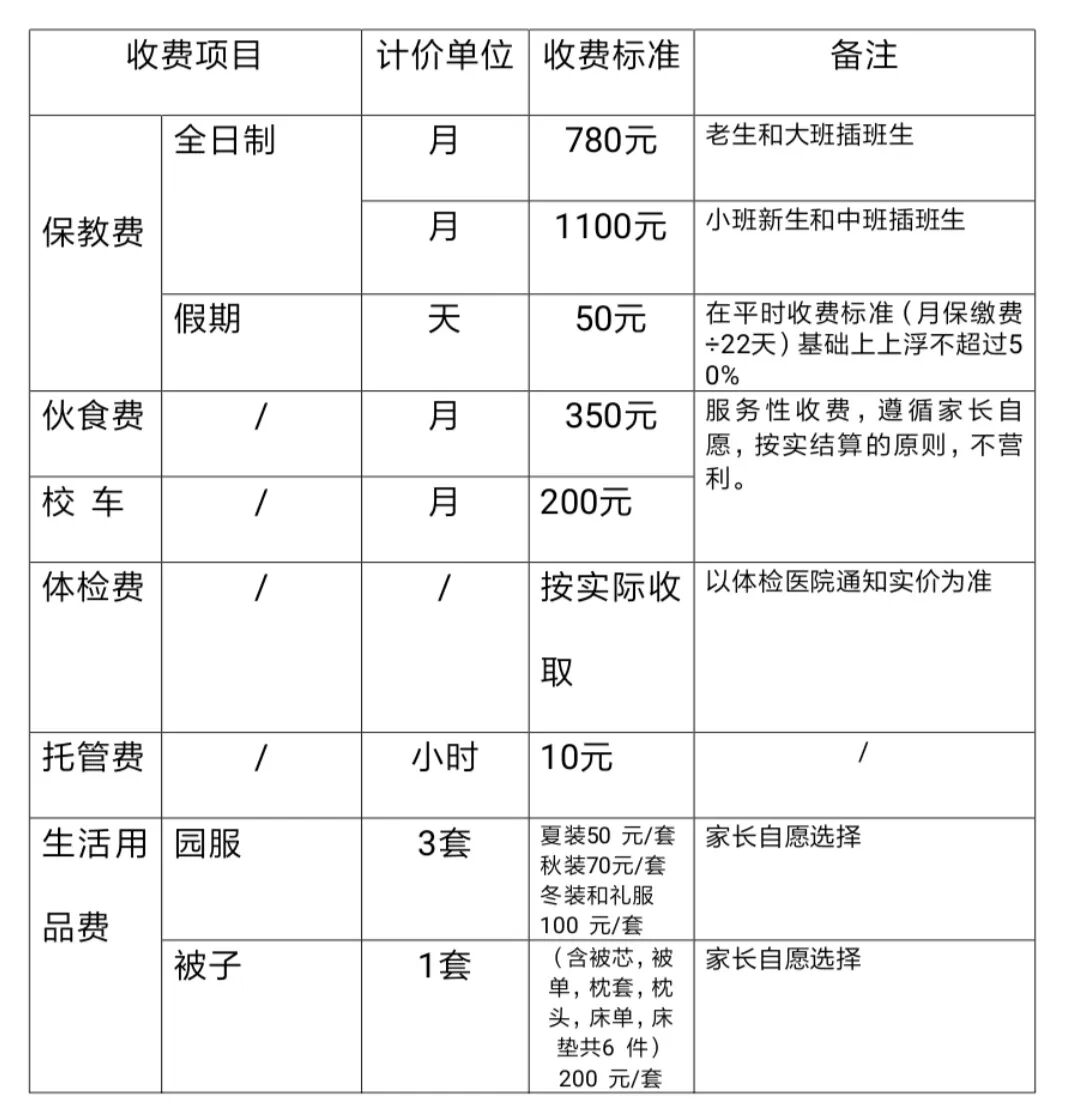 园服夏装50元/套、秋装70元/套、