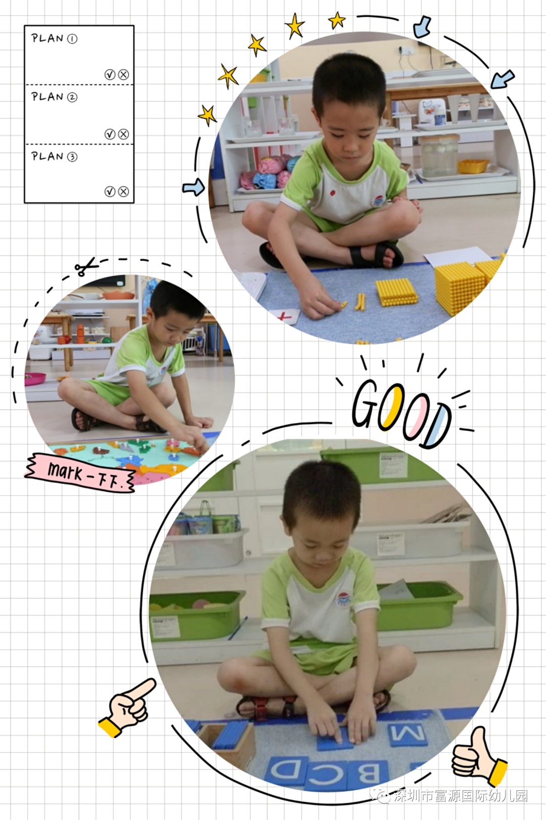 课程介绍 ☆ 美国高瞻课程 是以主动参与性学习为主,以养成教育为始终,以品质教育为根本,感受多元文化。 ☆ 英国本土TELP英语 是以自然拼读为主,让孩子从小的学习就跟国际接轨。 ☆国际文化课程 主要以个性化教学、国际文化、成功素质(礼仪、安全、情商、创造力、习惯养成),使幼儿的优势更优,弱势智能有得到更大的提高。 ☆ 蒙氏教育 以日常生活教育、感官、数学、科学文化、艺术学习为主,把握孩子成长的敏感期。培养孩子养成主动探索学习,促进幼儿建立良好的行为规范,形成内在的秩序感。 ☆ 心本课程 以促进儿童心理健康发展为主导,侧重幼儿真实美德,学习能力和社会适应力的养成为特色,以集体体验式游戏为教学模式的家园共育课程。 ☆ 体智能课程 透过身体活动,运用一种或多种游戏来提升他们的基本能力,以身体运动为主体,借由运动、游戏性质的活动设计,引导他们培养应有的基本能力。 ☆ 武术特色课程 以武术基本功为核心,引导幼儿通过柔韧性训练、协调性训练,耐力训练,速度训练,爆发力训练,等多方面的武术训练,加深对武术的体验和认识,提高幼儿各方面的身体素质,学习基本武术知识,唤起幼儿对武术的兴趣,培养尚武崇德的精神,为今后的健康成长奠定坚实的基础。 ☆ 快乐识字 通过右脑图像记忆的原理进行教学,将常用的3000多个汉字,融入1000多个词组并配上图画,通过字图分离的游戏,产生联想记忆,看到图想到字,看到字想到图:在游戏式课堂轻松愉悦的环境中学习,运用高效有趣有意义的全脑开发课程给孩子打好幼小衔接的基础! ☆ 奥尔夫音乐 奥尔夫音乐教育体系是当今世界最著名、影响最广泛的三大音乐教育体系之一。在奥尔夫的音乐课堂中,孩子们有机会进入丰富的艺术世界,音乐不再仅仅是旋律和节奏,而是与儿歌说白、律动、舞蹈、戏剧表演甚至是绘画、雕塑等视觉艺术相联系。在老师的引导下去关注特定的一个声源,去倾听,辨别,想象来自生活和自然界的不同的声音。
