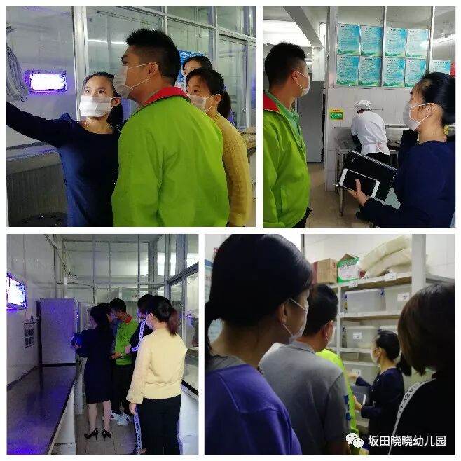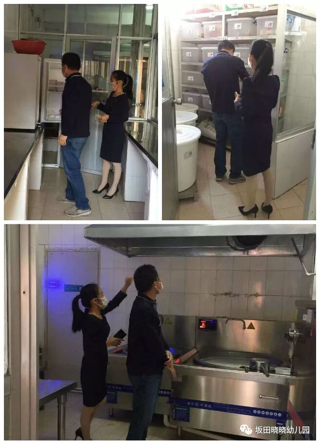 食品安全工作是幼儿园重中之重的头等工作,幼儿园迎来上级领导与家委会代表的指导工作,对厨房的操作流程、原材料、食用油、仓库、消毒餐具、食品留样等进行全方面了解。