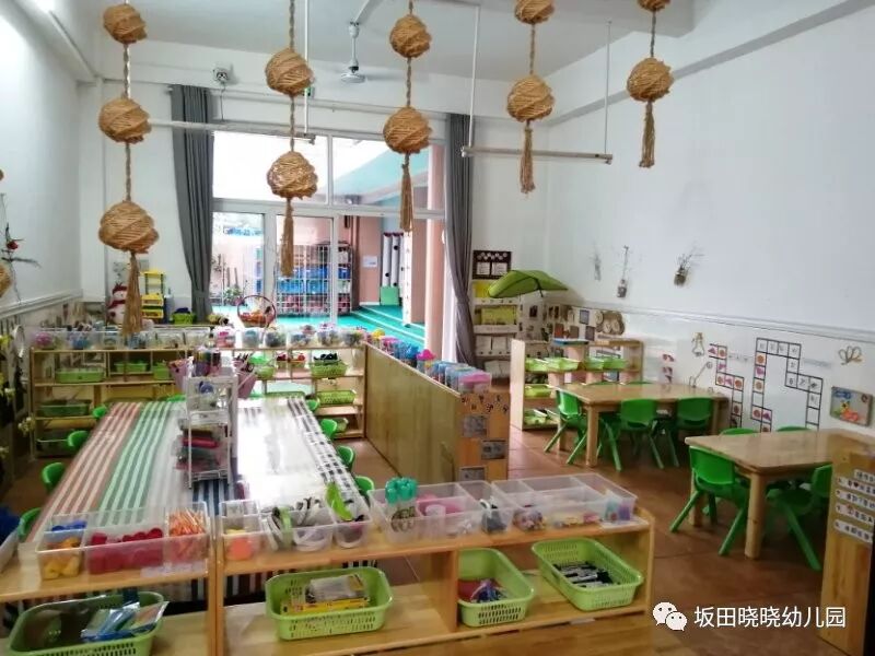 宽敞明亮的教室、温馨的区域和丰富多彩的区域材料