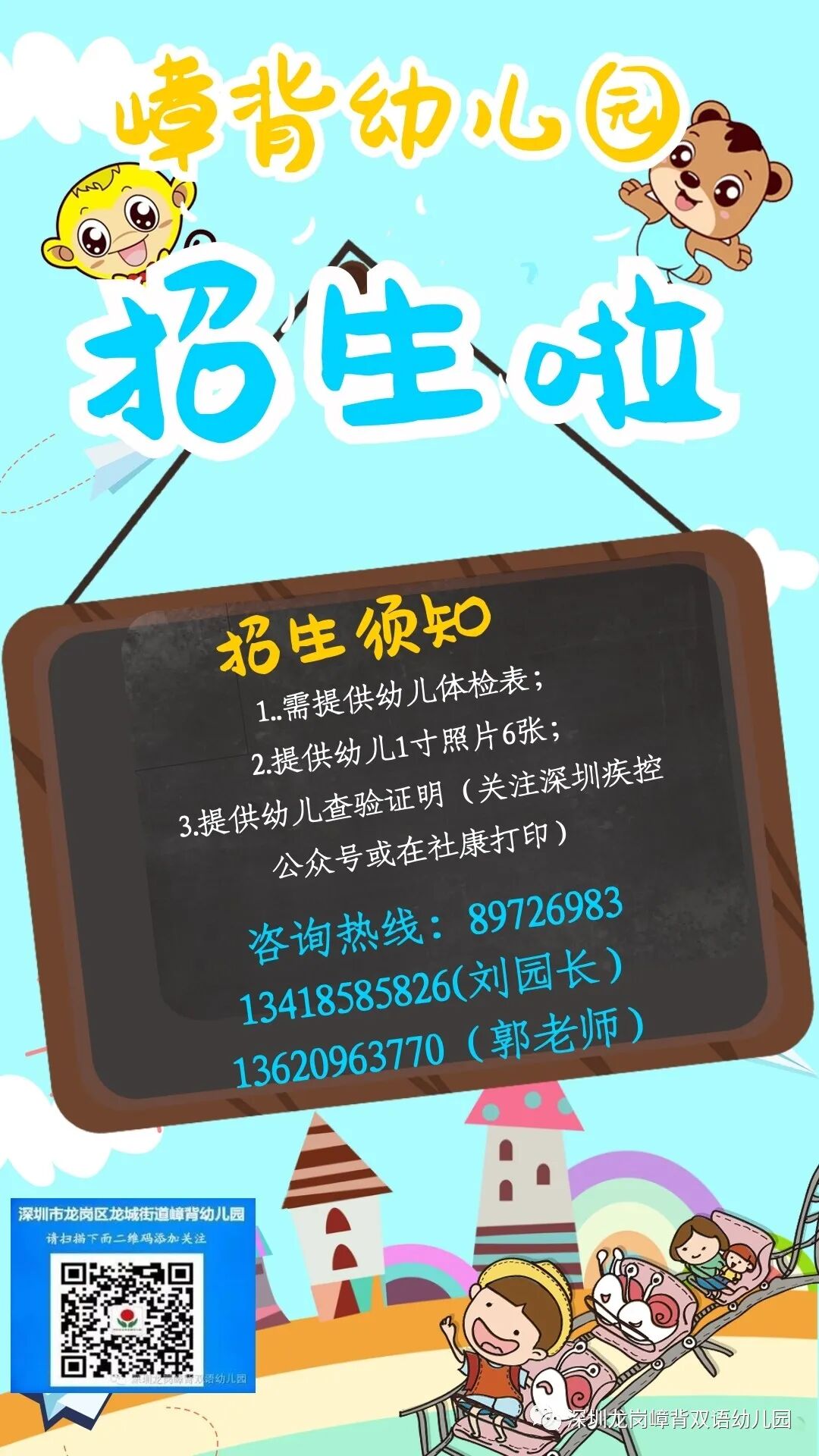 报名地点:深圳市龙岗区龙城街道嶂背双语幼儿 园(赐昱厂对面巷子进来)