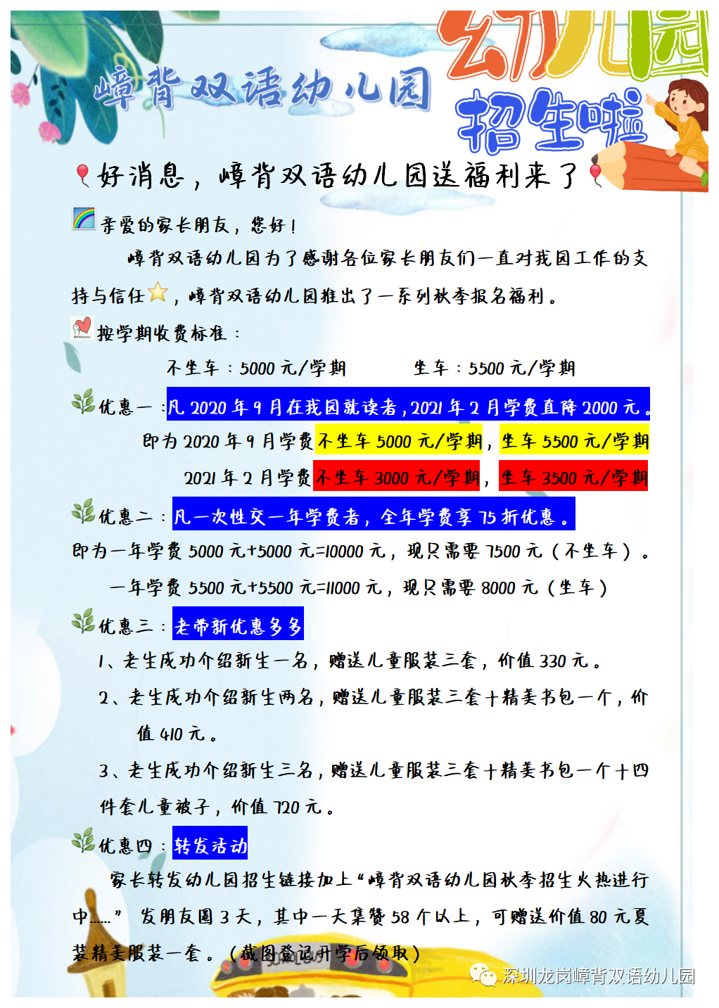嶂背双语幼儿园2020年秋季新生报名来了!