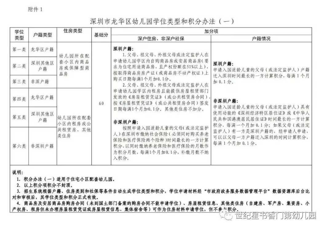 幼儿园遵循“先类型再积分”原则,按照一至六类学位类型及积分的高低依次录取,至幼儿园招生计划数录满为止。(龙华区幼儿园学位类型和积分办法详见附件1)